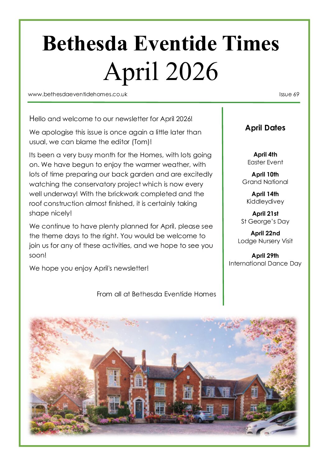 Bethesda Eventide Homes carehome in Ipswich is a registered charity (1051043)